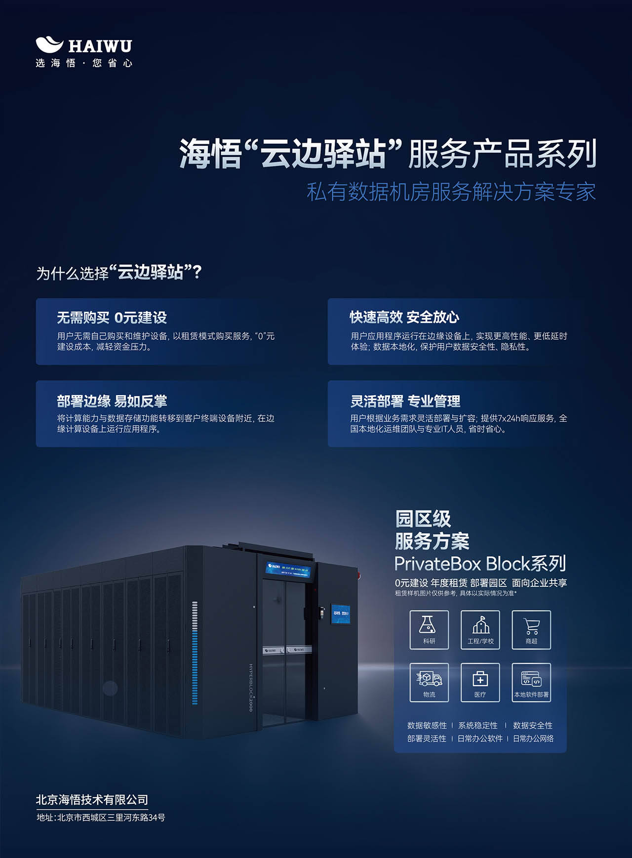 凭借数字化云平台的核心优势与本地化托管的安全保障,海悟云“云边驿站”数字化云平台私有云托管方案,已成功适配互联网、金融、政务、工业、医疗等多行业企业的算力管理需求,成为企业数字化转型的得力伙伴。在互联网领域,助力企业实现多园区设备远程统一管控,提升运维效率、降低管理成本;在金融领域,以主动式故障预警与高可靠管理,保障核心交易系统连续运行,契合合规要求;在政务领域,通过全生命周期精细化管理,优化算力资源配置,提升政务服务效率;在工业领域,依托实时数据监控与主动运维,支撑生产算力稳定输出,适配工业数字化升级需求。