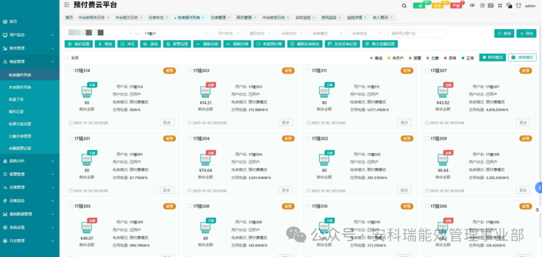 通过更换或利用原有智能物联表计,建设统一的预付费管理平台,构建了覆盖全公寓的预付费能耗收费管理体系。