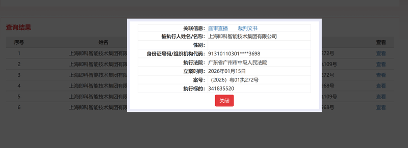 今年1月,即科集团被广东省广州市中级人民法院列为被执行人,执行标的达3.42亿元。3月,即科集团再次被广东省广州市中级人民法院列为被执行人,执行标的90.32万元。