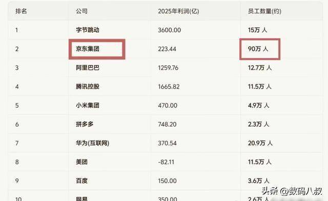 97国际-至尊品牌,源于信誉-在2025年互联网企业利润榜单上,京东集团223.44亿的净利润,与字节跳动、阿里巴巴、腾讯控股等巨头相比,显得并不突出。但当目光转向员工数量这一栏,90万人的数字却瞬间让其他企业黯然失色。在这个追求“轻资产、高利润”的时代,京东用沉甸甸的就业数据,书写了一份与众不同的企业答卷,也让我们看到了利润之外,更值得被尊重的企业担当。