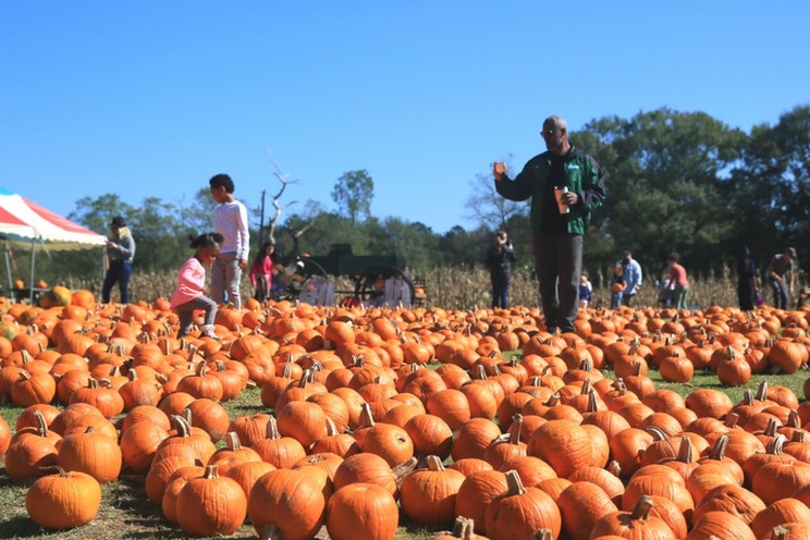 2020年10月31日,在美国新奥尔良市,人们在南瓜农场里玩耍。新华社发(魏兰摄)