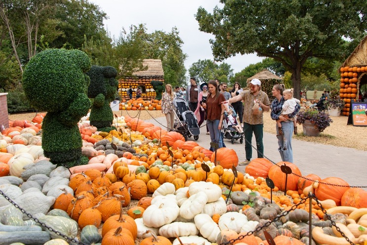 10月12日,游客参观美国得克萨斯州达拉斯植物园的“南瓜小镇”。新华社发(田丹摄)